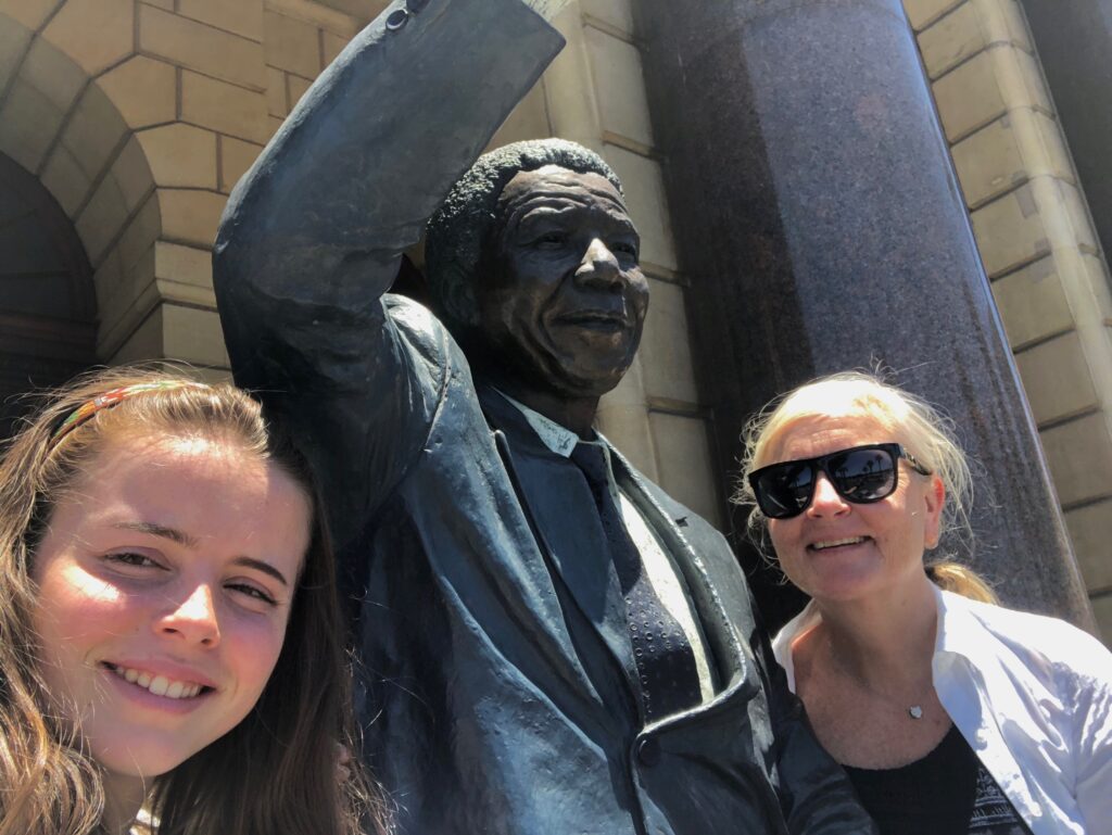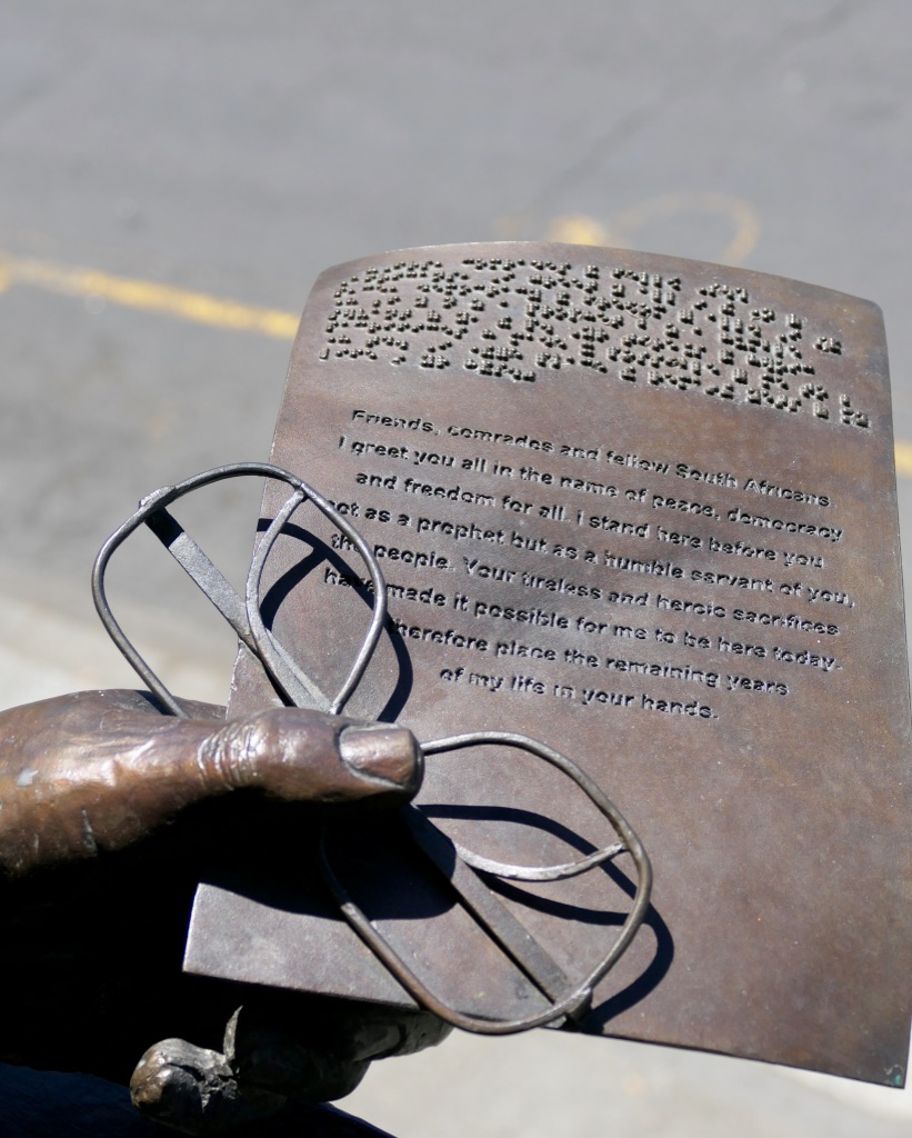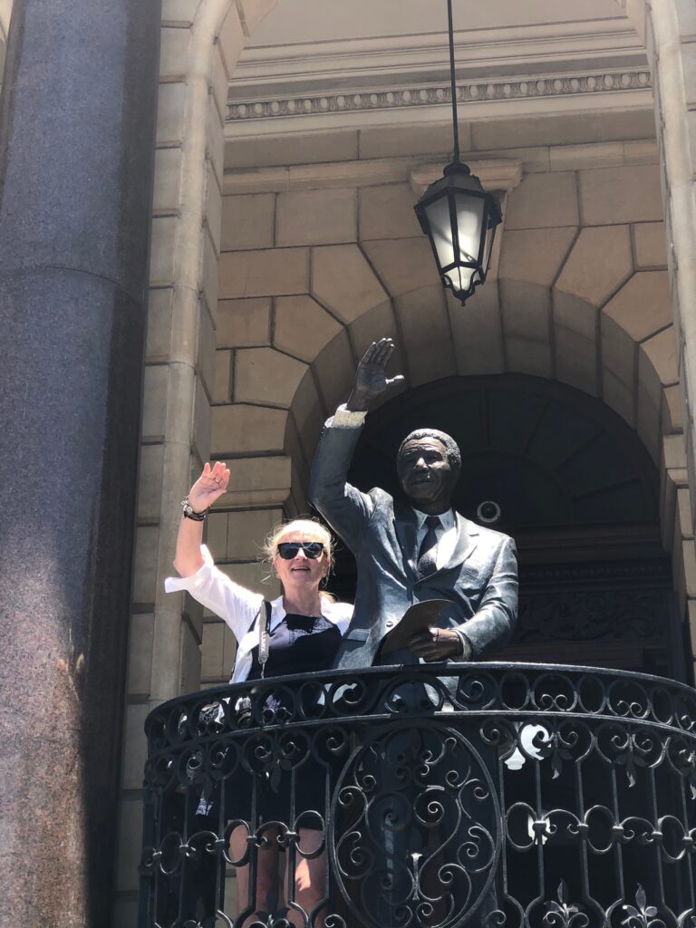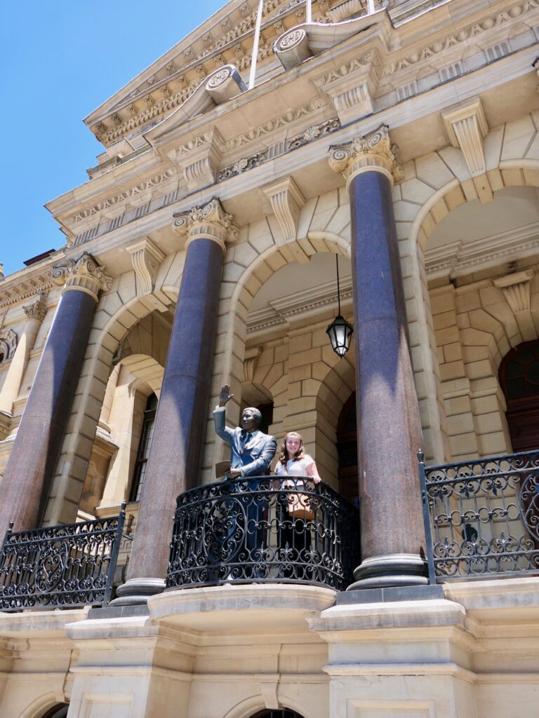 Here we are by the statue of Nelson Mandela – raised in 2018 – at the balcony of the City Hall – overlooking the Grand Parade. It was on the same spot where he made a speech when he was released from prison on 11 February 1990.