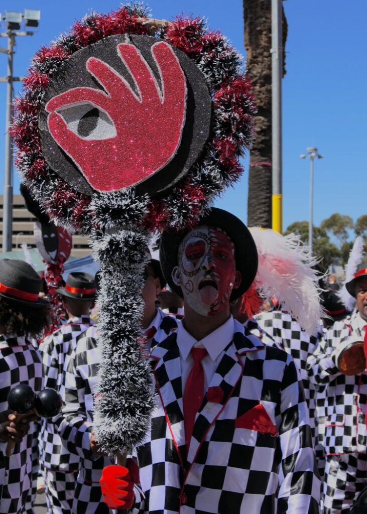 The Cape Town Street Parade, previously known as the Cape Minstrel Carnival or “Tweede Nuwe Jaar” procession of the “Kaapse Klopse” – thousand of performers from all areas across Cape Town. They wear colourful performing in the streets of the city centre.